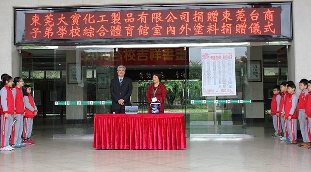東莞大寶化工對東莞臺商子弟學校新建體育館油漆捐贈儀式