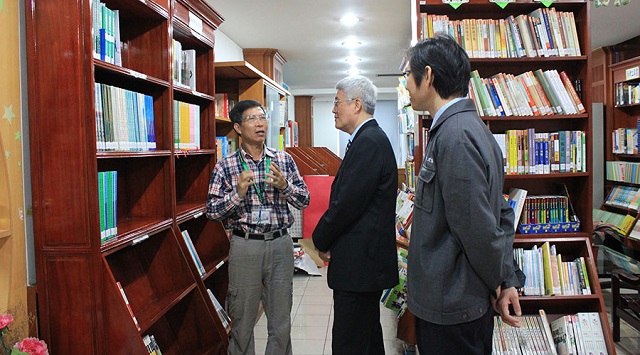 儀式后,陳總一行對學校進行了參觀,由校長陪同并向大家介紹了學校的相關情況。