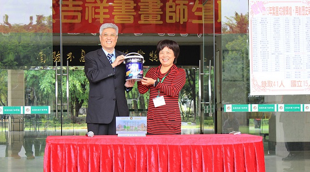 簡單而莊重的捐贈儀式在東莞臺商子弟學校“麗德”行政樓前舉行,陳金粧校長與陳春華總經理分別代表東莞臺商子弟學校和東莞大寶化工參加捐贈儀式。陳校長在致詞中,首先對陳總一行的到來表示誠摯的歡迎,并表達了對于大寶化工為學校捐贈油漆的感謝之意。陳總在致辭中勉勵學生認真學習,心懷感恩做有用的人才,將來感恩回報社會。