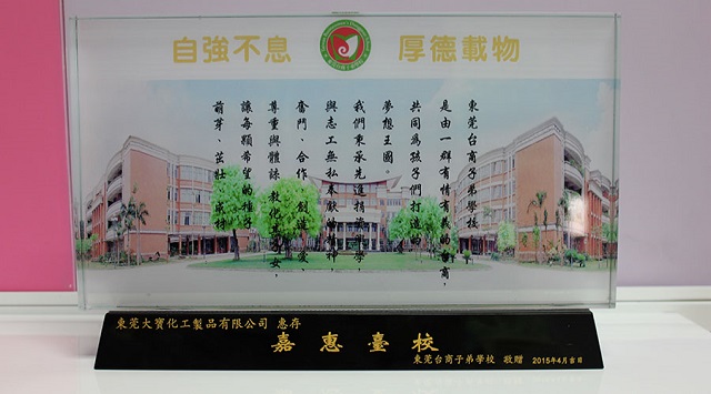 學校贈送東莞大寶化工紀念品