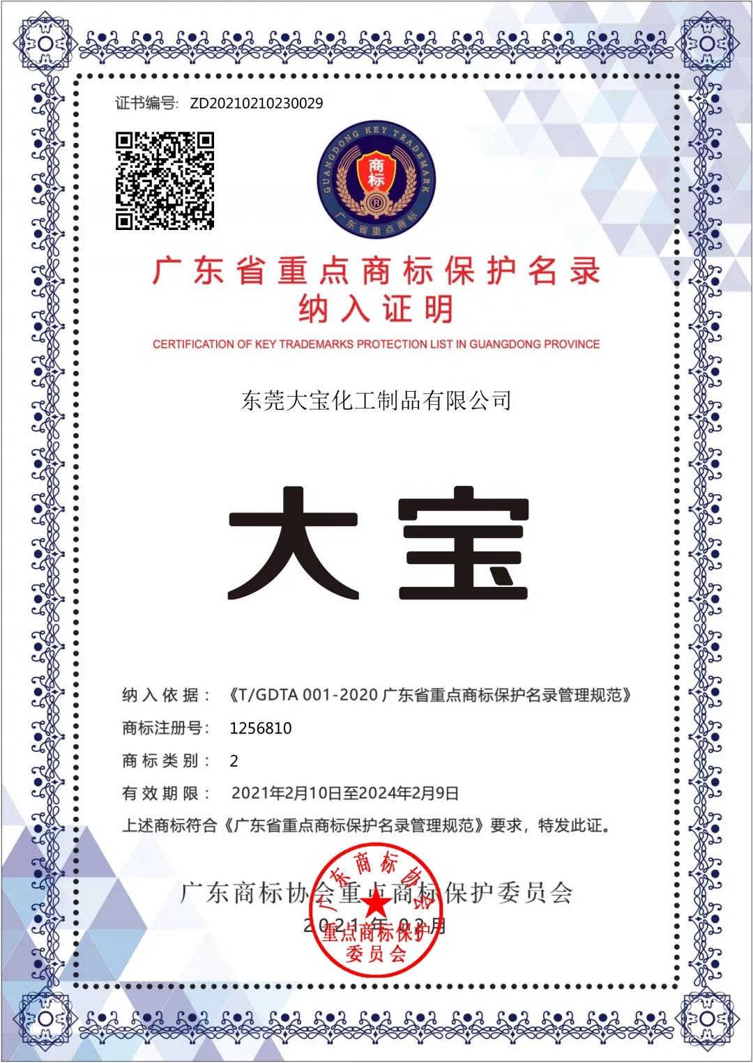 此次入選廣東省重點商標保護名錄,是對大寶漆品牌知名度、市場影響力、企業良好形象與社會聲譽的肯定。大寶漆希望通過重點商標保護,捍衛在知識產權申報、維護和應用轉化等方面取得的成績,讓消費者可以享受到安全、放心的產品和服務。讓自主品牌知識產權的發展與保護工作邁向新臺階,助力廣東省打造高標準知識產權保護高地。