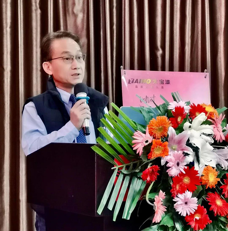 經(jīng)銷事業(yè)部葉子琛副總經(jīng)理在致辭中,分析當(dāng)下涂料行業(yè)所面臨的問題和機(jī)遇,并對(duì)未來發(fā)展方向做出提示。葉副總說:從2019年上半年開始,大寶成功推出第一代仿石漆產(chǎn)品,兩年多來通過卓越的產(chǎn)品技術(shù)研發(fā)和涂裝工藝創(chuàng)新能力,如今已更新到第三代,這次主推富含中國文化的24節(jié)氣仿石漆第三代色卡,定會(huì)為美麗鄉(xiāng)村自建房外墻裝飾市場賦能。