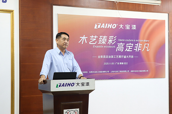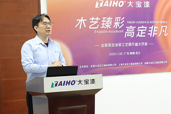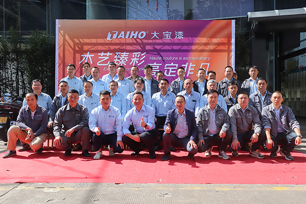11月5日,大寶漆順德·龍江全新高定涂裝工藝展廳盛大啟幕。活動以“木藝臻彩 高定非凡”為主題,大寶化工直銷事業部總經理張正賢、業務一部副總經理周志鴻、業務一部營銷總監葉小兵以及順德辦全體業務與工程服務人員等,共同見證了這一服務升級的新里程碑。