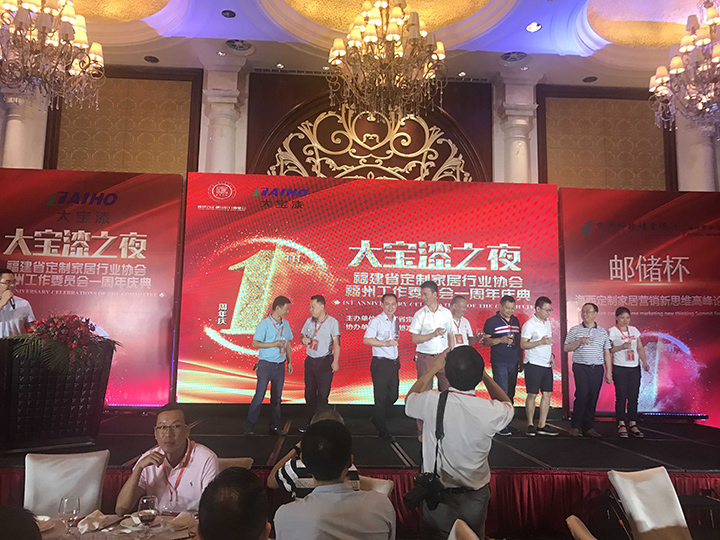 8月9日,由東莞大寶、福州大寶聯合冠名贊助的福建省定制家居行業協會福州工作委員會成立一周年慶典大會,在福州融僑水鄉酒店盛大舉行。整個會場喜氣洋洋、高朋滿座,來自全國各地的行業專家、福建省定制家居行業協會全體理事會成員、福州工作委員會全體會員等共計三百多人,共同見證了這一輝煌時刻。